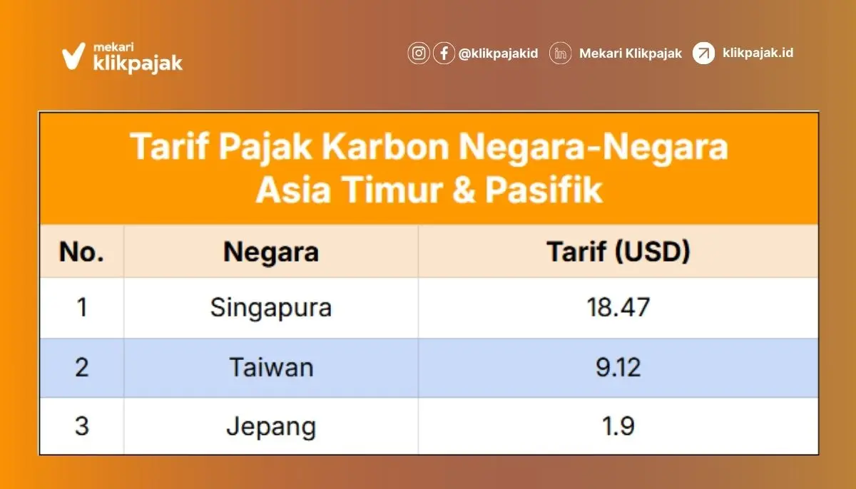 Pemerintah menetapkan tarif pajak karbon minimal sebesar Rp30.000 per ton CO2e (setara sekira hampir USD 2 dengan kurs rata-rata Rp16.000/dolar AS. Tarif ini lebih rendah dibandingkan negara maju seperti Swedia (USD 127,25) tetapi lebih tinggi dari Ukraina (USD 0,76).