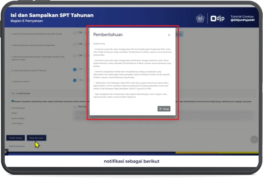 - Tutup notifikasi tersebut untuk melanjutkan pelaporan.