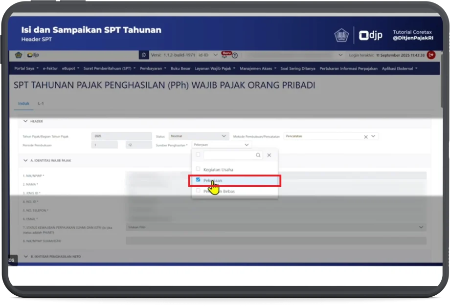 - Bagi pribadi karyawan dari 1 pemberi kerja, pilih sumber penghasilan Pekerjaan.