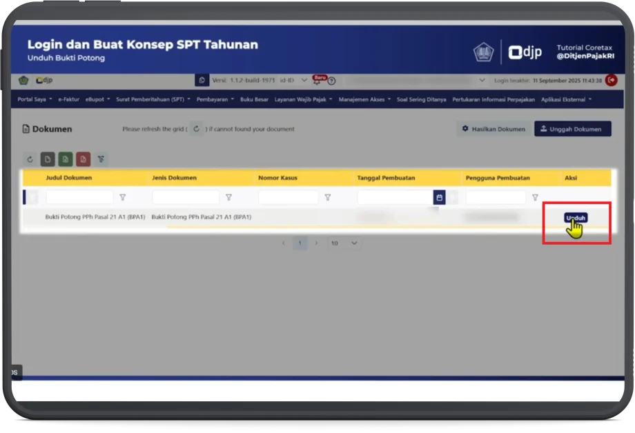 - Klik Unduh untuk mengunduh dokumen bukti potong A1 atau BPA1.