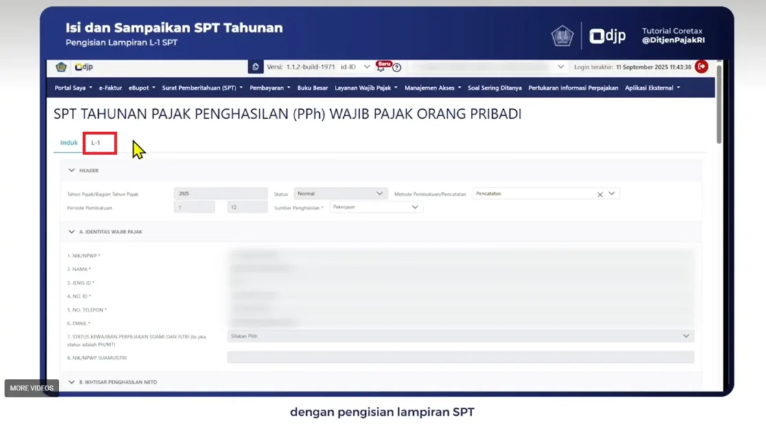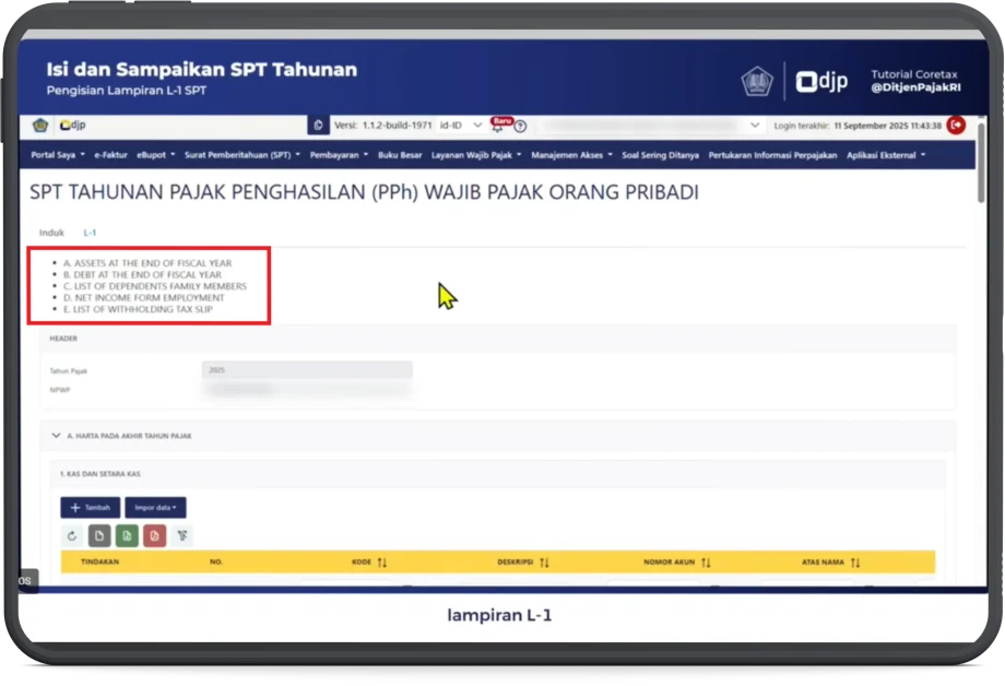 12. Selanjutnya bagian Pengisian Lampiran SPT. Lanjutkan dengan pengisian Lampiran–L1.