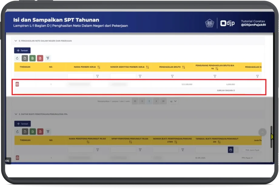 - Bagian D: Penghasilan Neto Dalam Negeri dari Pekerjaan