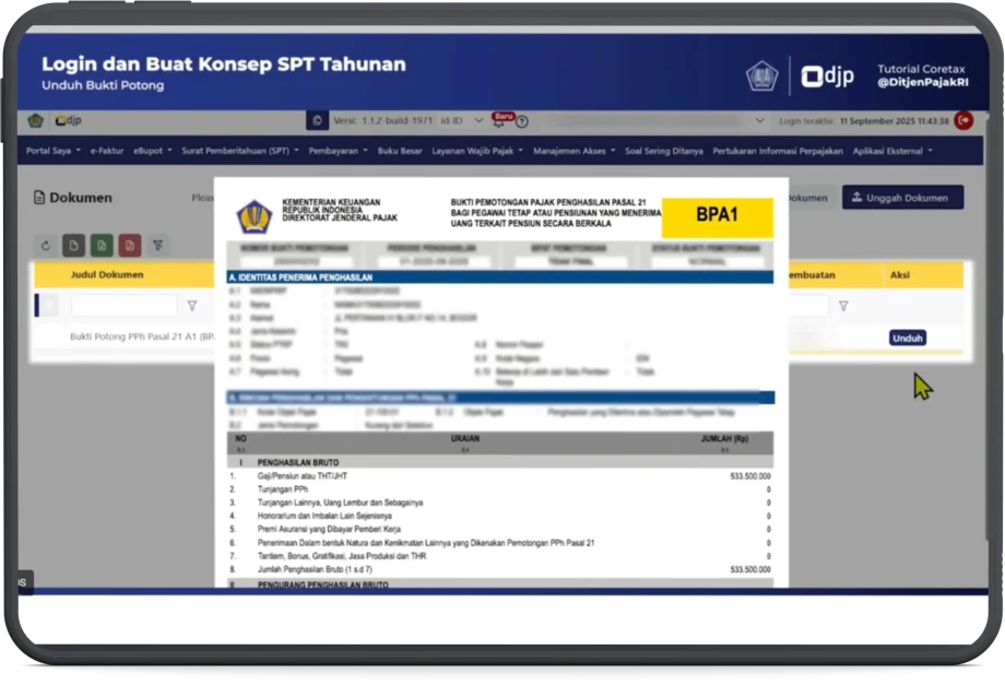 Data pada bukti potong PPh 21 harus di-input sesuai angka yang tertera. Coretax DJP akan mencocokkan data dengan laporan pemberi kerja, sehingga pastikan tidak ada selisih atau kesalahan nominal sebelum melapor.