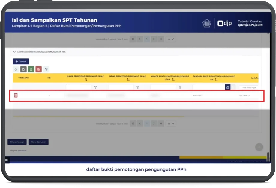 - Bagian E: Daftar Bukti Pemotongan/Pemungutan PPh