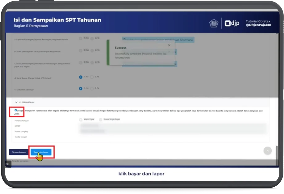 14. Berikutnya tanda tangani dokumen SPT Tahunan Pribadi.