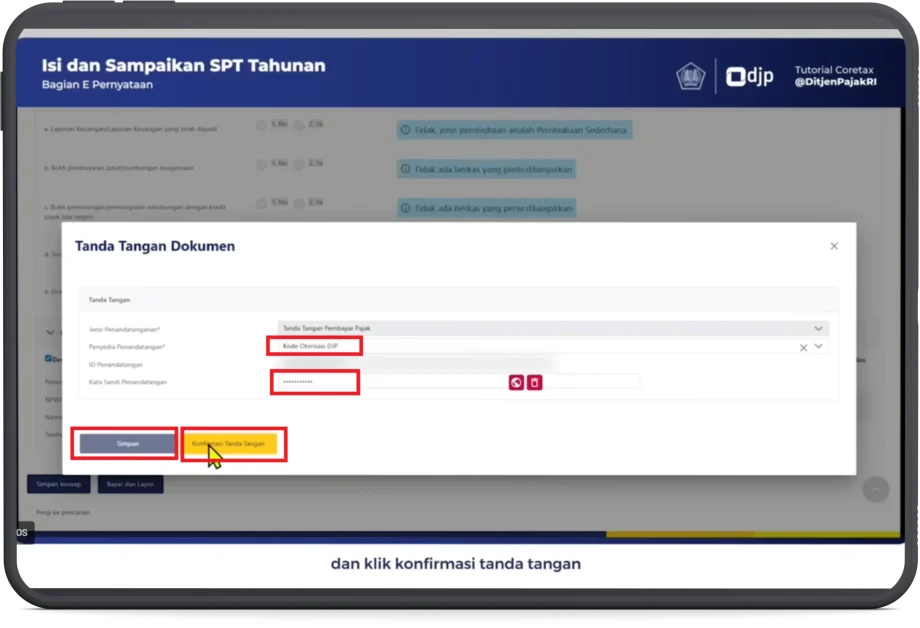 - Klik Simpan, dan klik Konfirmasi Tanda Tangan.