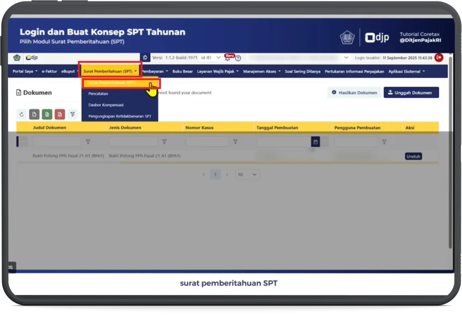 5. Kemudian klik modul Surat Pemberitahuan (SPT), pilih menu Surat Pemberitahuan SPT.