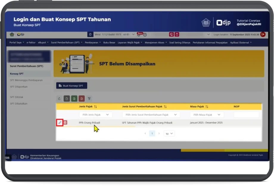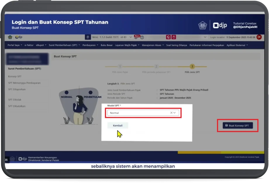 - Kemudian klik Buat Konsep SPT.